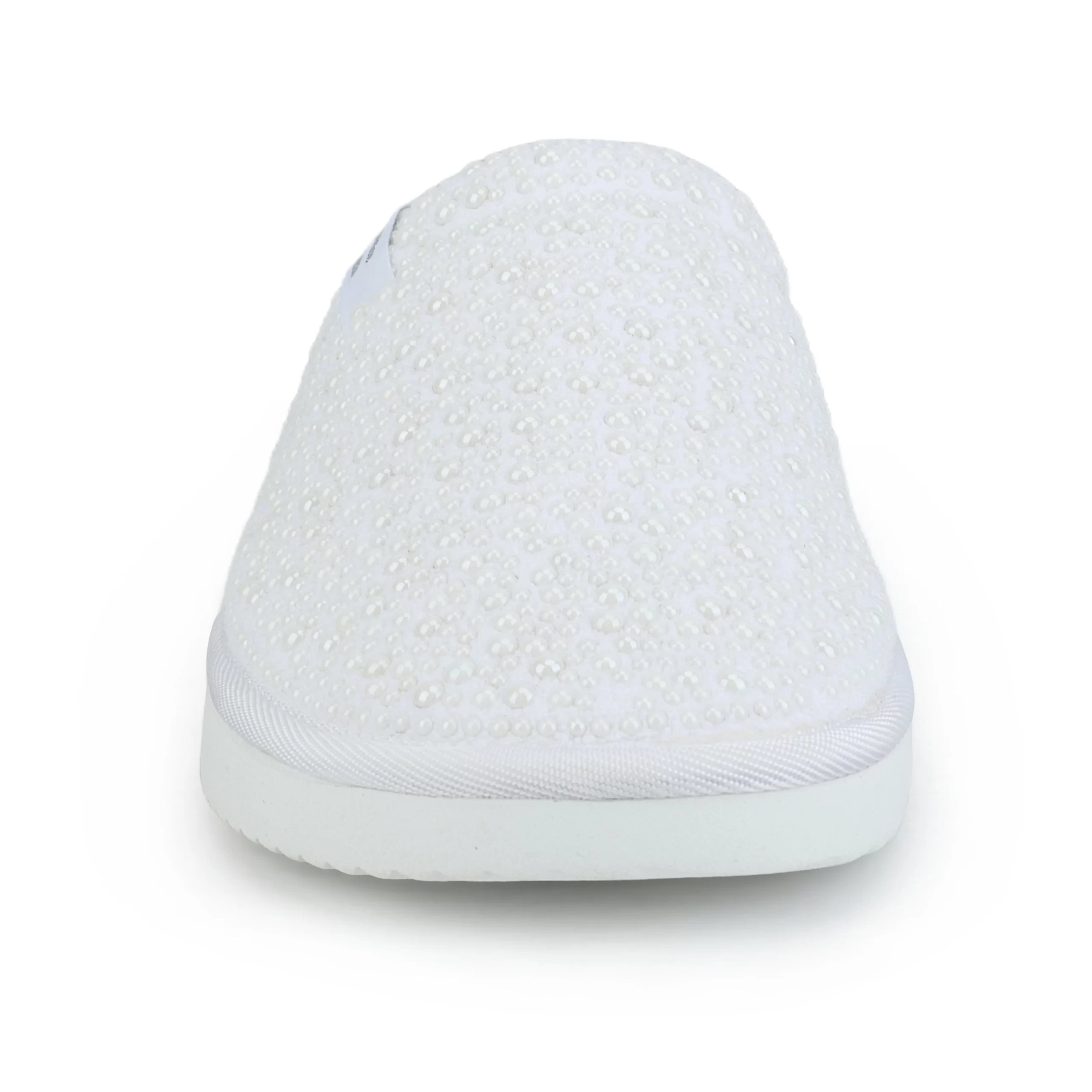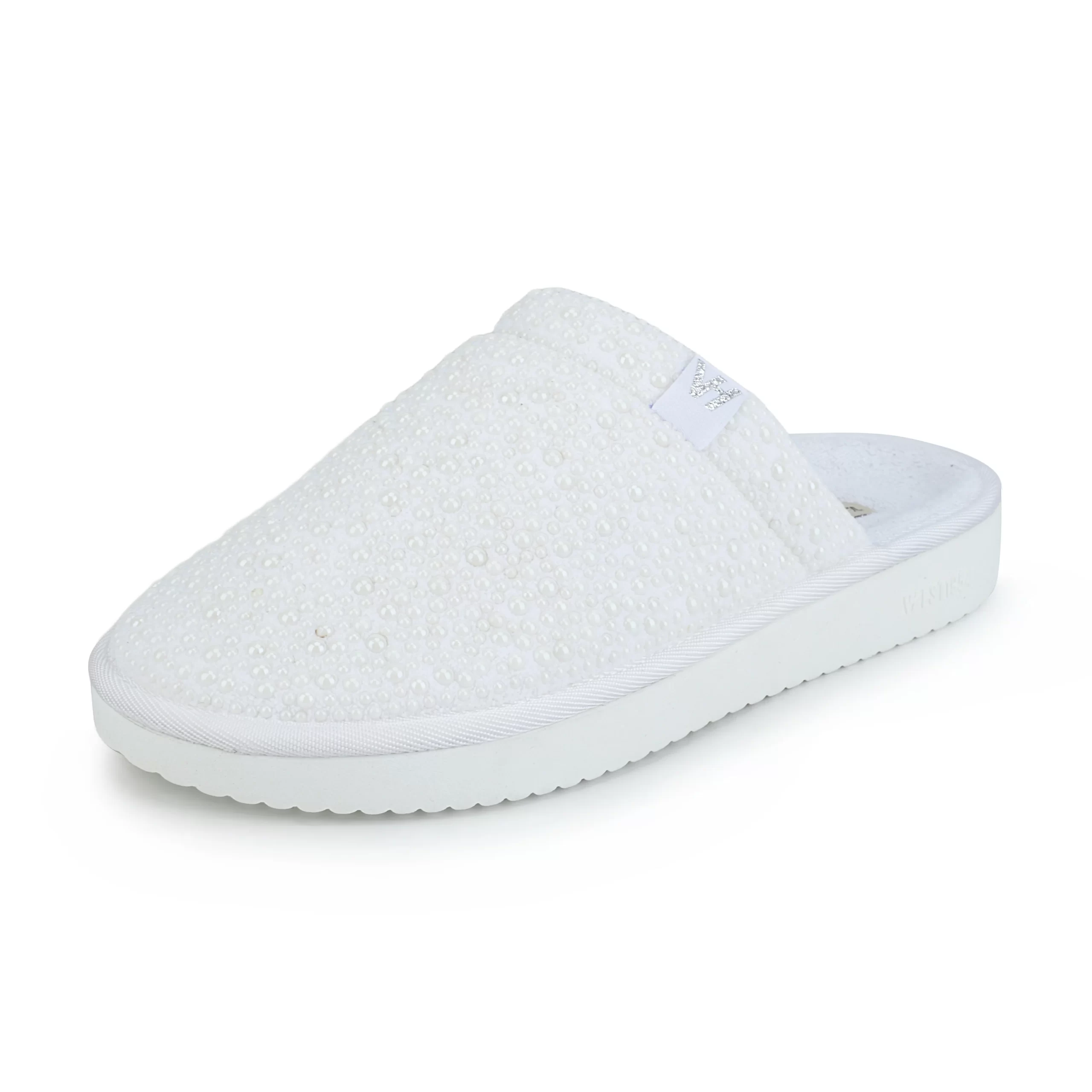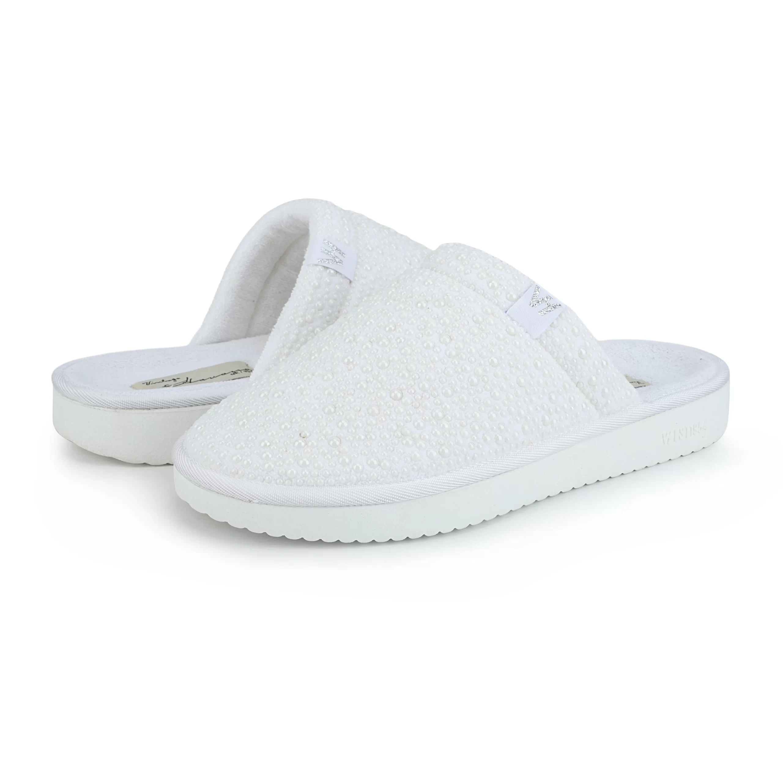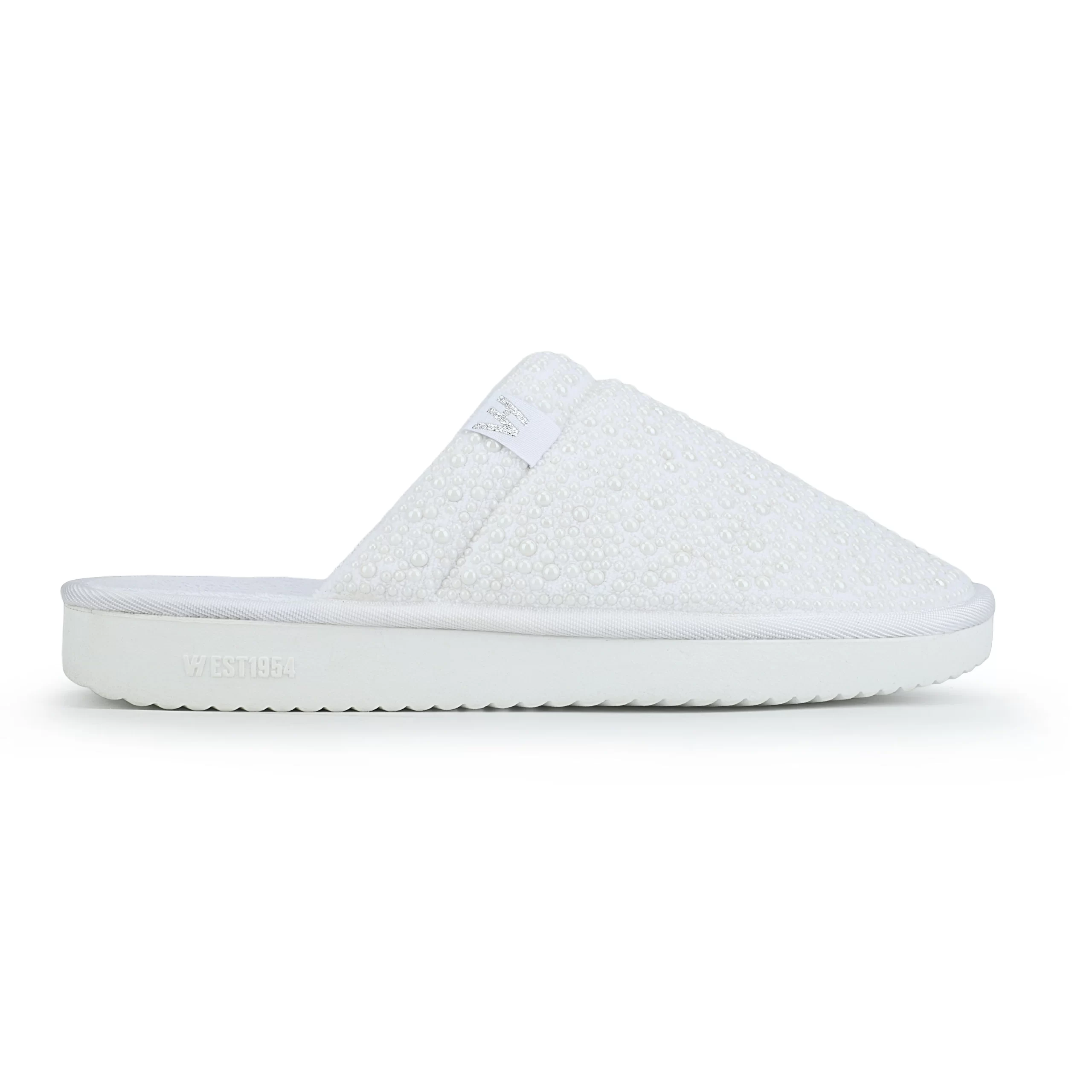 Experience ultimate comfort with our Mellow – White Pearls indoor/outdoor slippers. Featuring a durable sole that transitions seamlessly from living room to garden, these elegant pearl-adorned slippers combine style with practicality. Each pair comes with a convenient gift carrying case, making them perfect for travel or presenting to someone special. Versatile luxury for everyday wear.