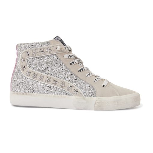 Effortlessly stylish, the RAY in SILVER GLITTER combines convenience with flair. These true-to-size slip-ons eliminate the hassle of laces while the distressed outsole adds character and a lived-in vibe. Perfect for adding a touch of sparkle to your everyday look without sacrificing comfort.