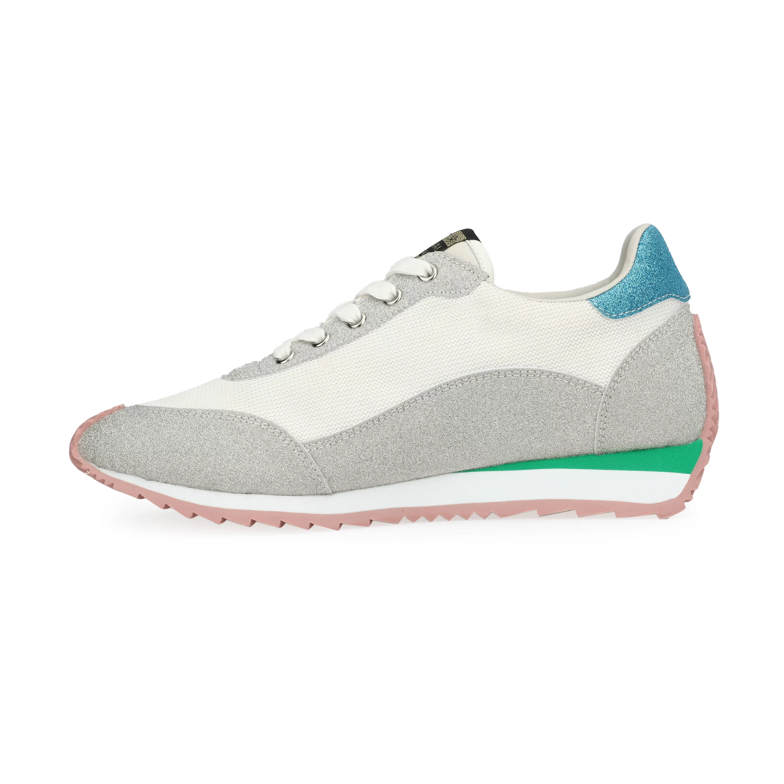 Elevate your style with the SHOOTER 11 in stunning Silver Glitter Peach Multi. These convenient slip-on shoes feature a blend of synthetic, leather, and suede materials for durability and comfort. The no-tie design offers effortless wear while the signature traction outsole provides reliable grip. True-to-size fit ensures you get the perfect match for your feet.