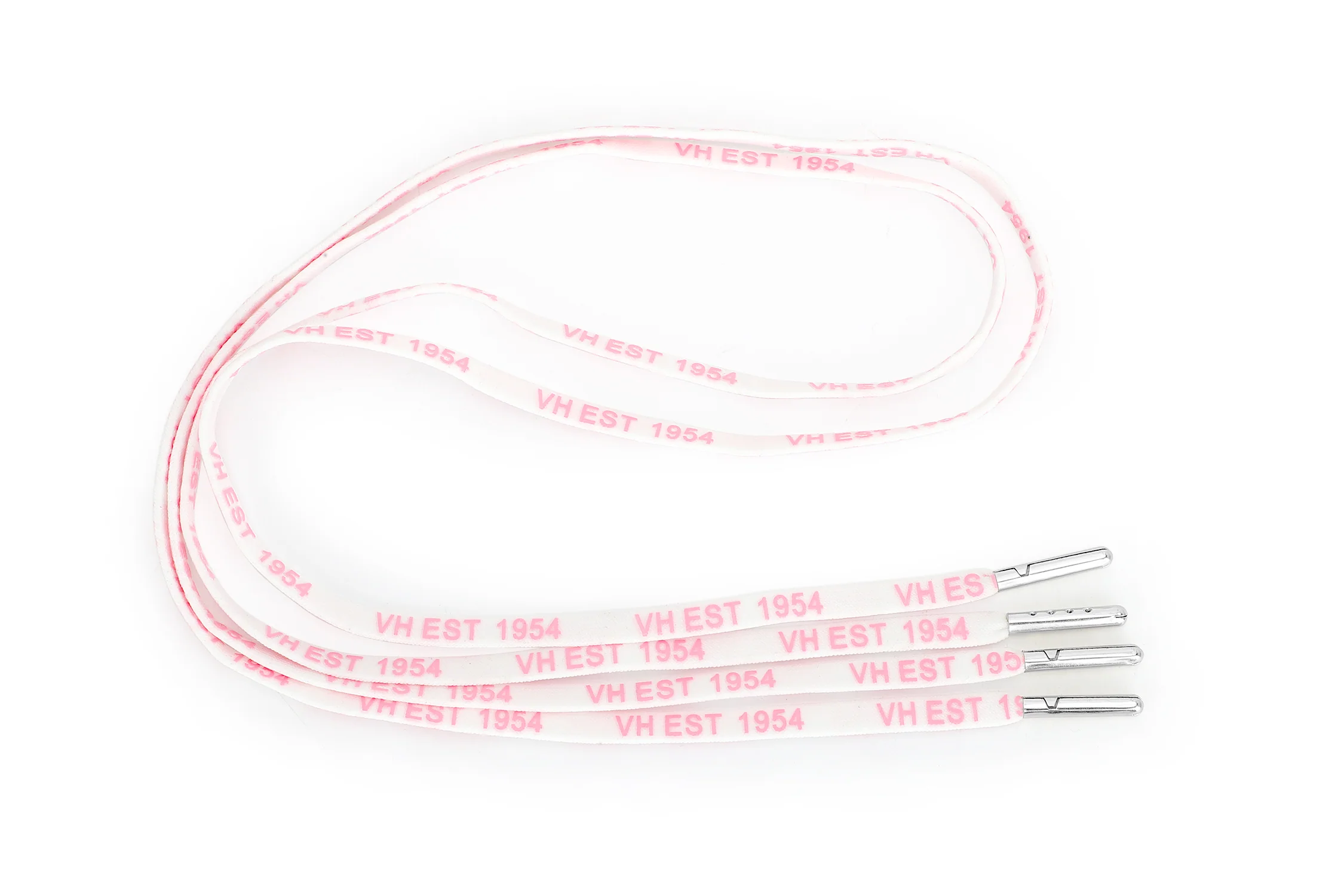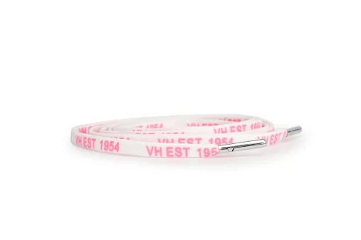 Classic white laces featuring our signature “VH EST 1954” printed detail. These laces add a touch of Vintage Havana heritage to your footwear while the pink and silver tips provide a subtle pop of color. Perfect for refreshing your favorite sneakers with our authentic brand elements.