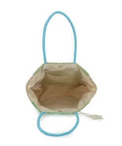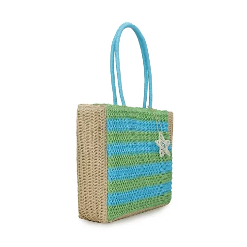 The Slam Bag 1 in Turquoise combines a stylish crochet design with a practical top handle tote shape, making it perfect for everyday use. Its unique star detail adds a subtle touch of personality, while the vibrant turquoise color ensures you stand out effortlessly. Durable and lightweight, this bag offers both fashion and function for your daily essentials.