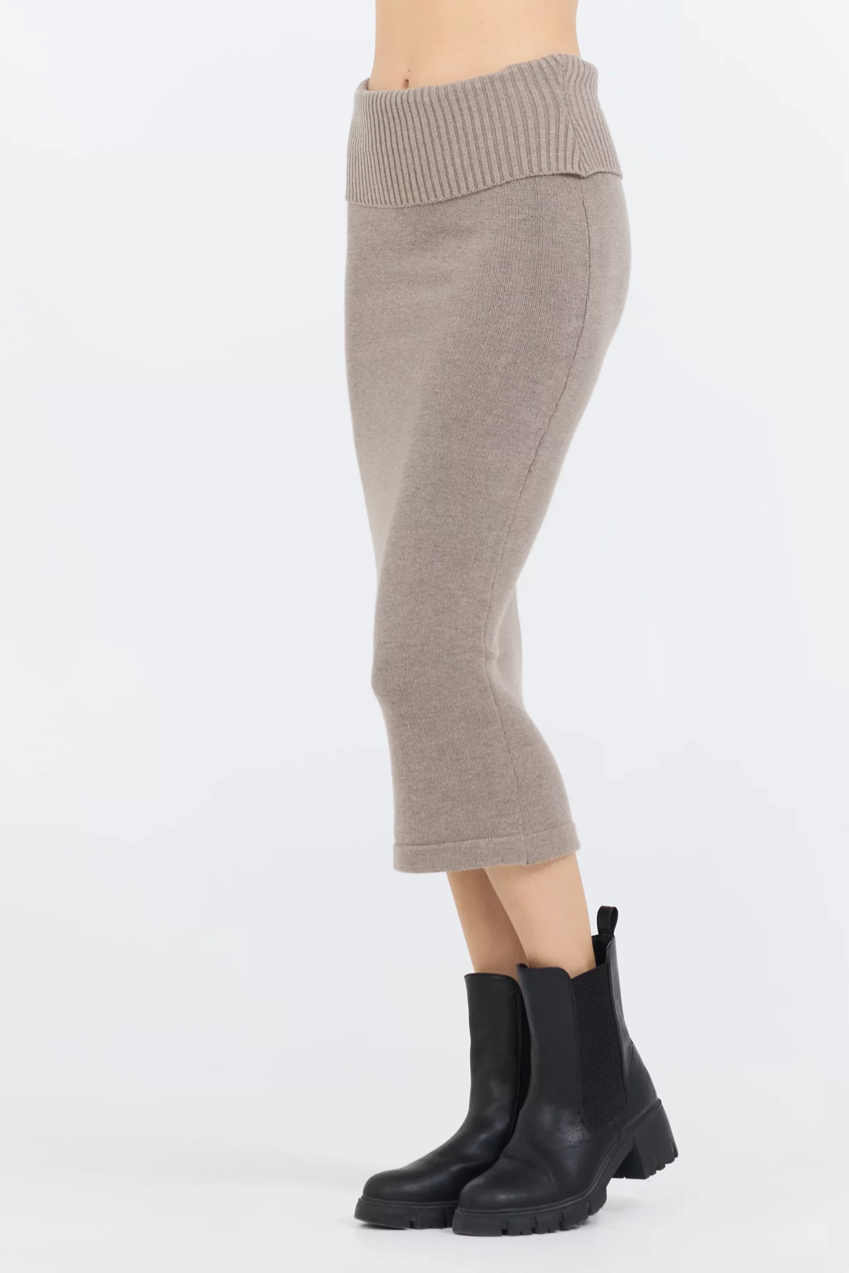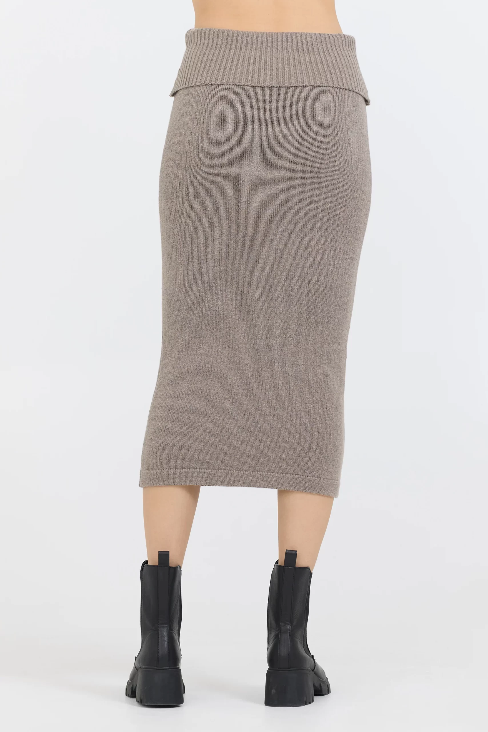 The Stone Grey Knit Midi Skirt features: