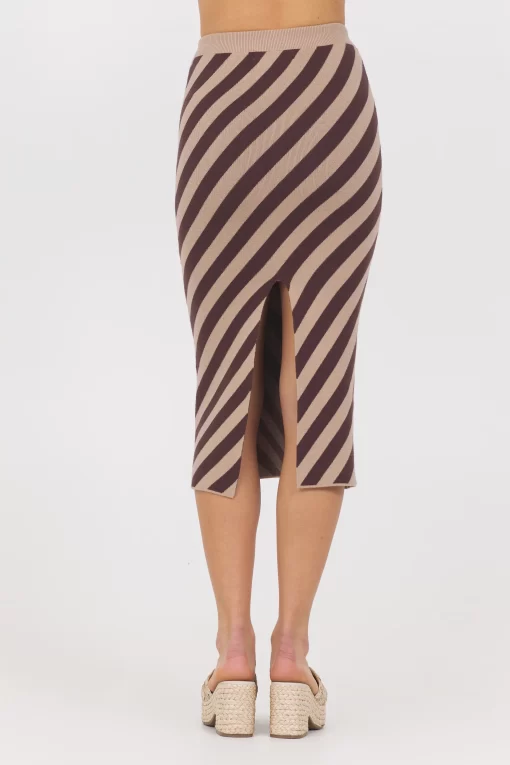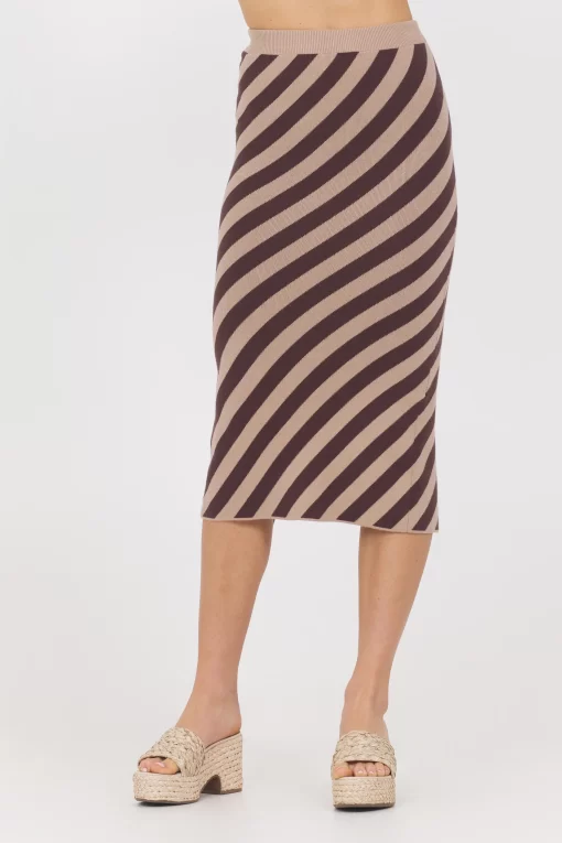 VintageHavana Women’s Striped Knit Midi Skirt | Brown & Tan