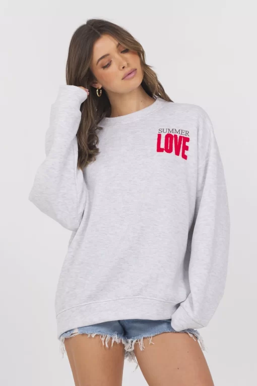 The Summer Love Fleece Crewneck offers a soft fleece fabric that provides warmth and comfort, making it an ideal choice for cooler days. Its classic crewneck design ensures a timeless look that pairs effortlessly with any casual outfit. Perfect for layering or wearing on its own, this crewneck combines practicality with understated style.