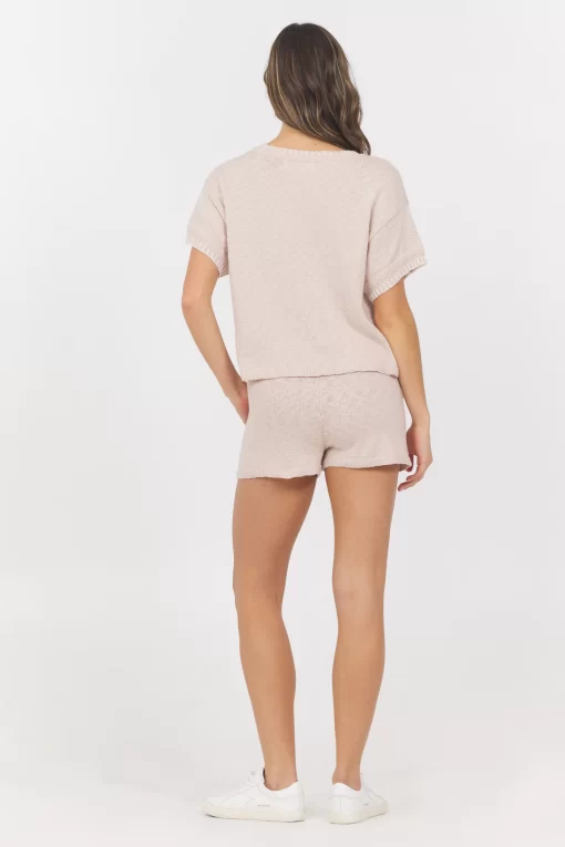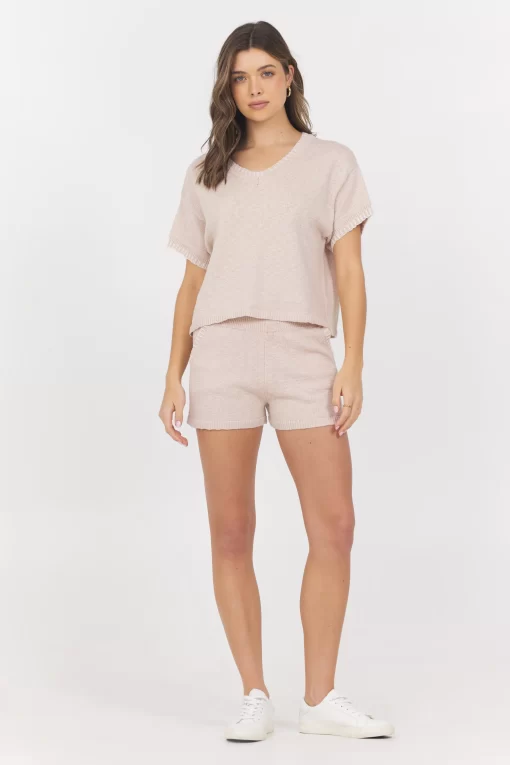 The Short Sleeve Sweater w/ Whipstitch features: