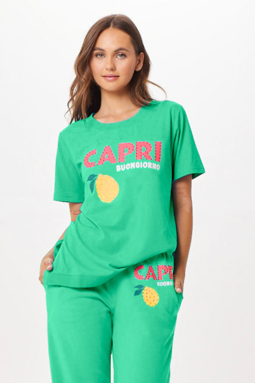 The Surf Green Capri Jet Setter T-Shirt combines the cozy comfort of a fleece sweatshirt with a stylish, casual design. Perfect for layering or wearing on its own, this versatile piece offers warmth without sacrificing breathability, making it ideal for both travel and everyday wear. Its surf green color adds a fresh, vibrant touch to your wardrobe.