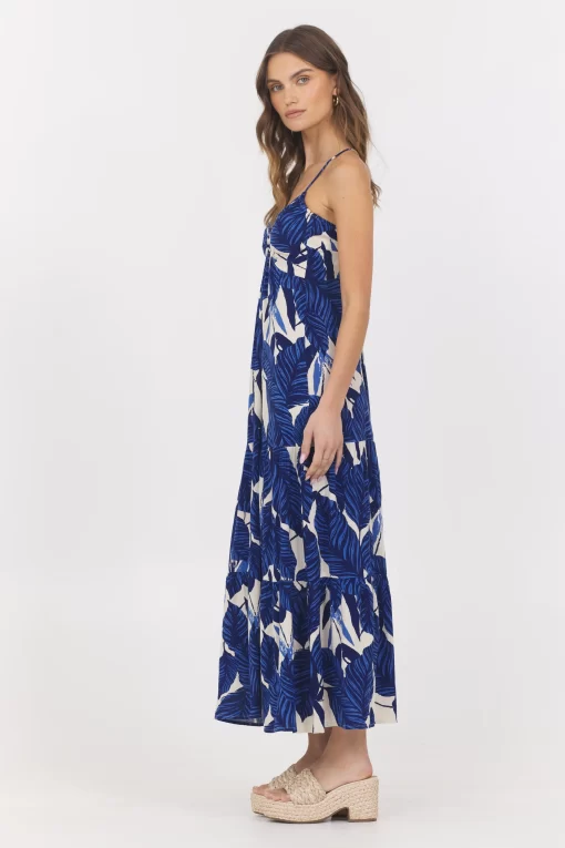 This tiered maxi dress offers a flowing silhouette with layered tiers that add dimension and movement. Its maxi length provides elegant coverage, making it a versatile choice for both casual outings and more polished occasions. Crafted to combine comfort with style, this dress is an effortless way to elevate your wardrobe.