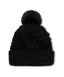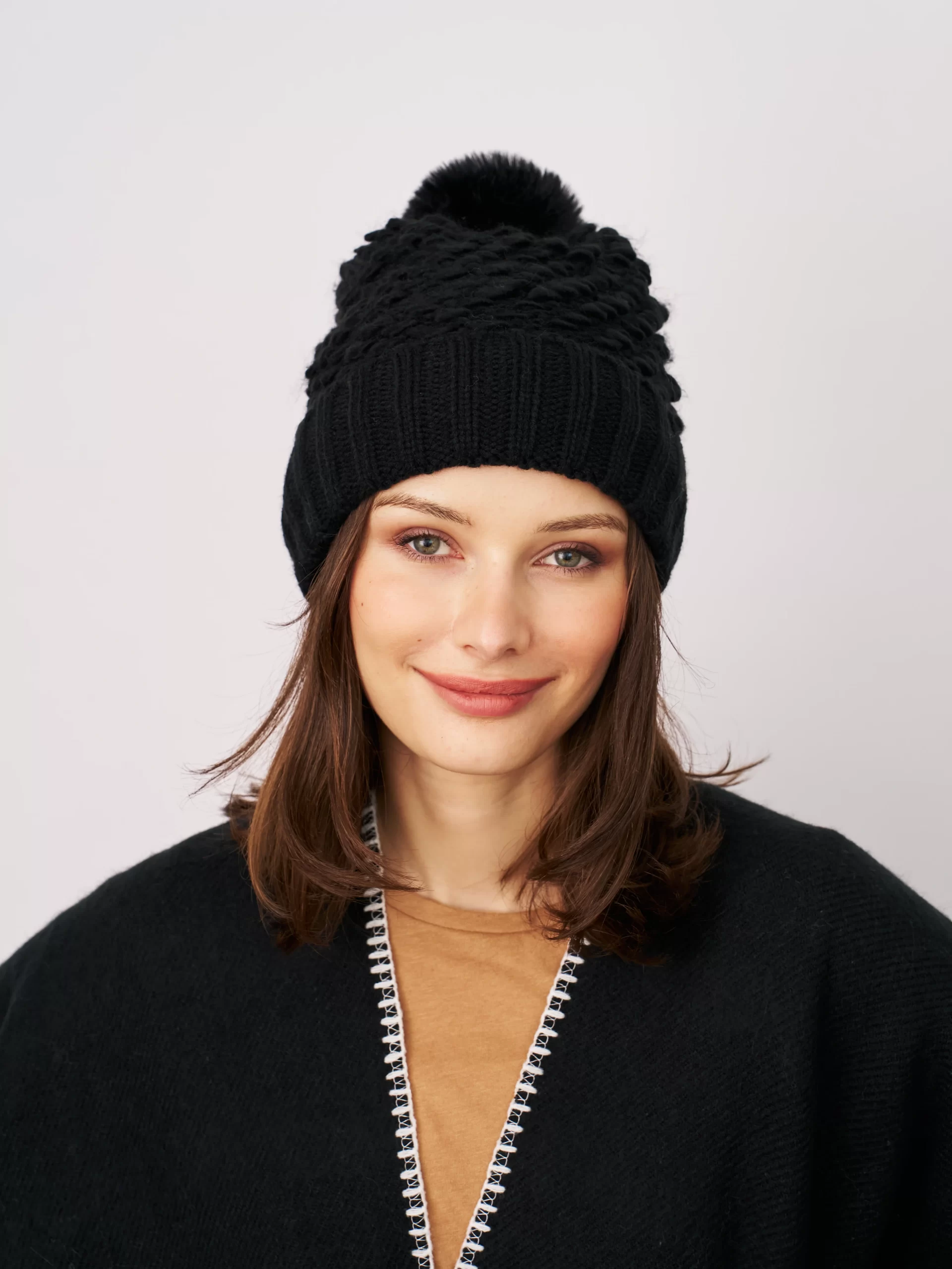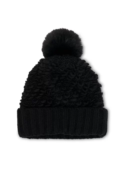 This Turn Up PomPom Hat in black features a textured acrylic shell for warmth and durability. The soft polyester pompom adds a playful touch, while the polyester lining ensures comfortable wear. Perfect for chilly days, it combines style and function effortlessly.