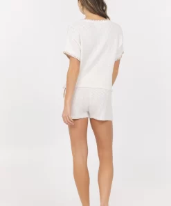 The White Summer Sand Short Sleeve Sweater with Whipstitch combines classic V-neck styling with subtle whipstitch detailing along the sleeves and neckline. This lightweight sweater offers a refined yet relaxed look, perfect for warm-weather layering or casual office wear. Its thoughtful design adds a touch of craftsmanship while maintaining comfort and versatility.